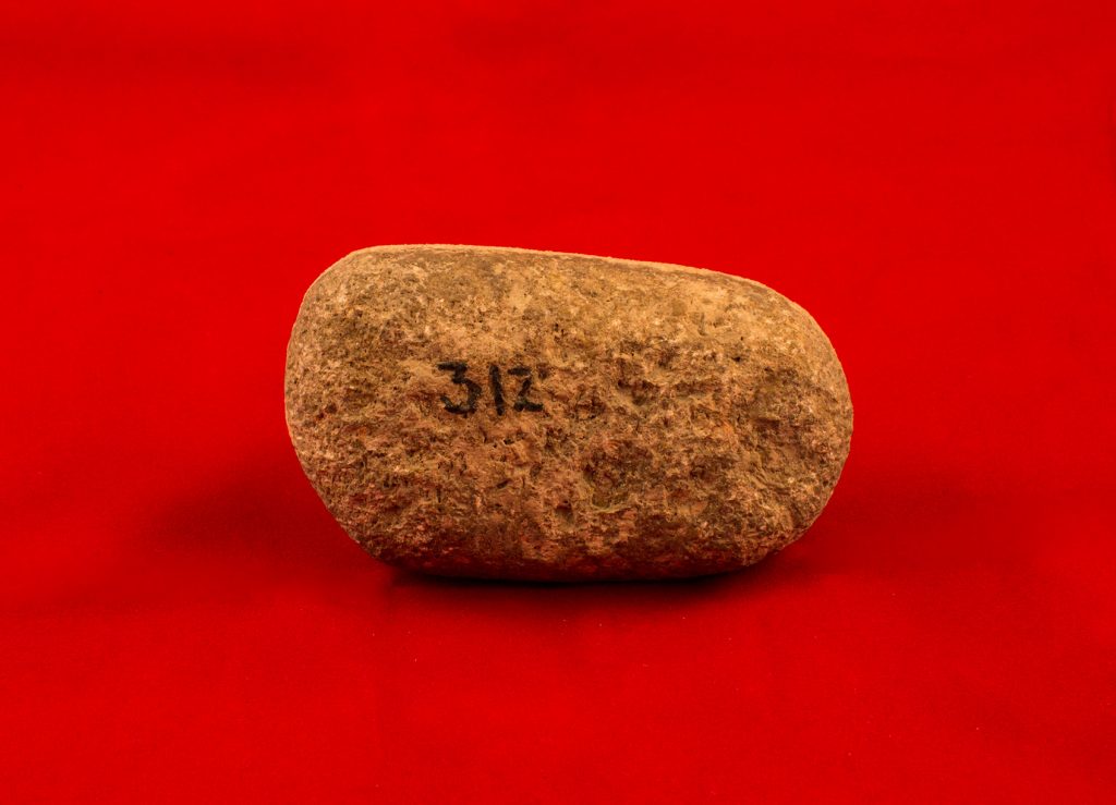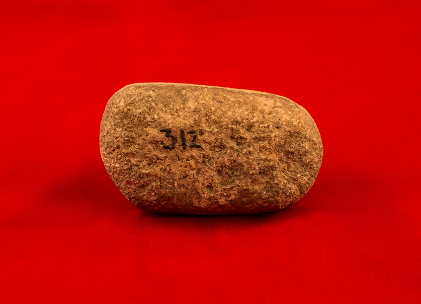 Камено оруђе. Локалитет: Старчево Град; Период: Млађе камено доба (неолит) 6000.- 5200. п.н.е, инв. бр. 312.