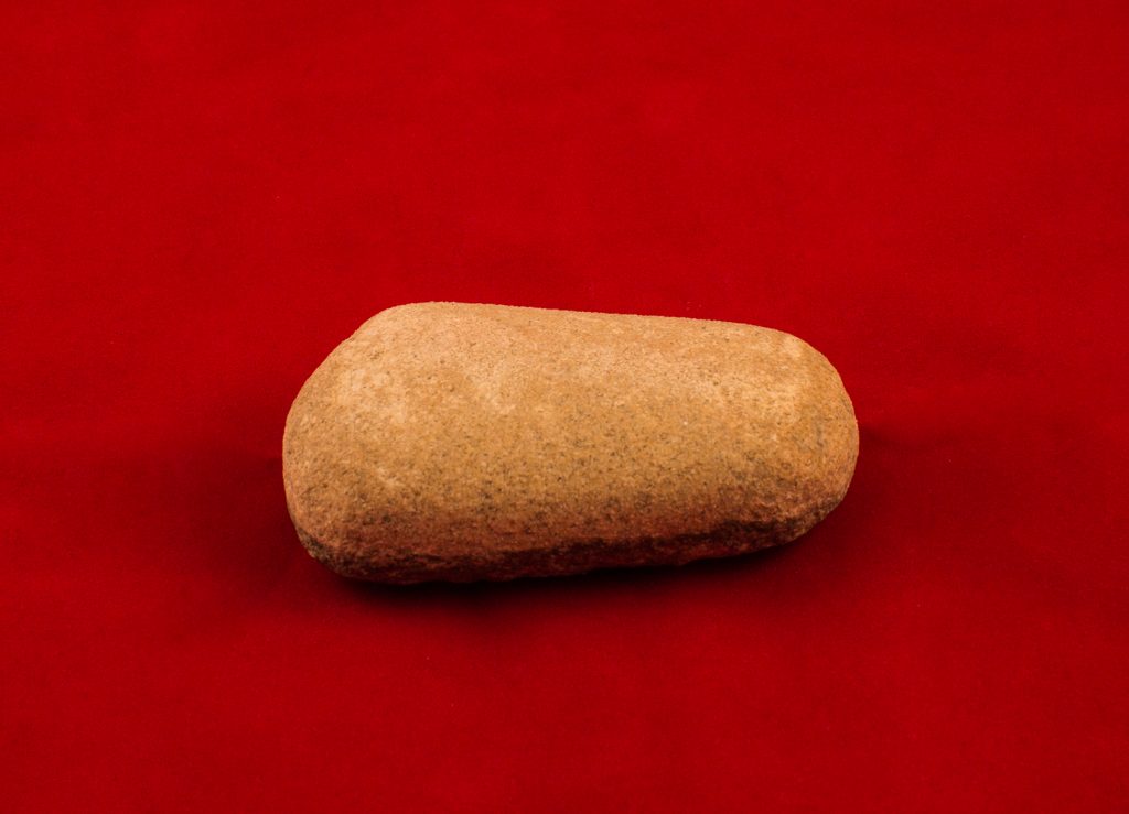 Опис: Камено оруђе, пљоснато-дугуљастог облика. Светло белкасте боје, рађен од камена пешчара, једна страна грубо глачана. Служило као оруђе за обраду зивотињских кожа или дрвета.