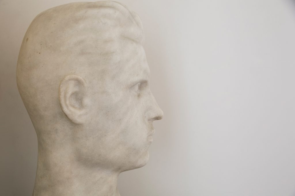 Иван Палека, Глава дечака (Стеван Имреи), око 1930, мермер, висина 42 цм, доле, средина: ПАЛЕКАИз Поклон-збирке Феодоре Имреи Ричи, инв. бр. 624